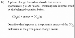 Describe what happens to the potential energy of the CO2 molecules as the given phase change occurs.