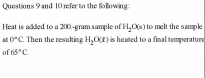 Based on the given information, compare the amount of heat required to vaporize the 200- gram sample of H20(l) at its boiling point to the amount of heat required to melt the 200- gram sample of H2O at its boiling point?