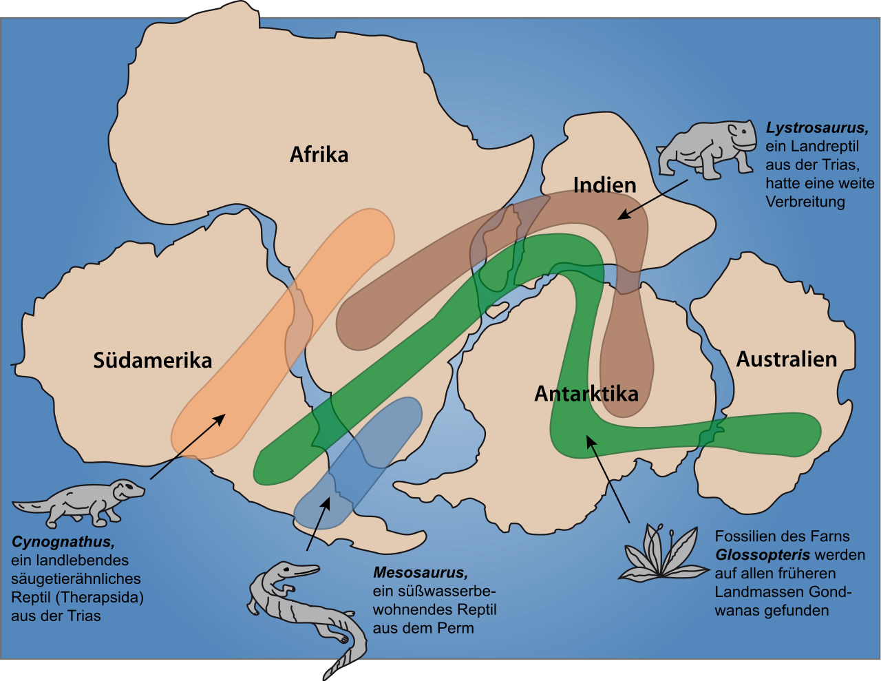 Identische identische Fossilienfunde in Südamerika und Afrika gelten als Beweis, dass diese Tiere einst auf dem selben Kontinent gelebt haben.