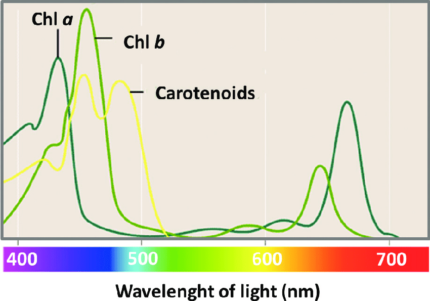 Which regions of the visible spectrum does chlorophyll absorb well?