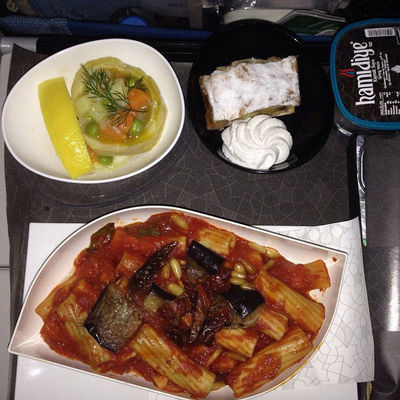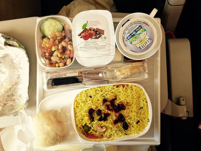 Welche Fluggesellschaft servierte ein orientalisches Reisgericht?
