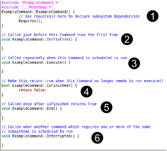 Where should you put code that will cancel the command when another command for the same subsystem is called?