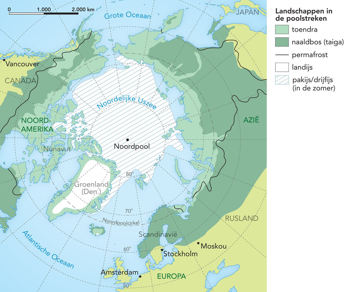 Op Groenland geldt hetzelfde soort klimaat als het land waar het bij hoort. Baseer je antwoord op de foto.