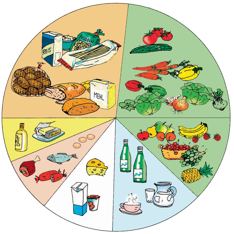 Du ernährst dich gesund, wenn du dem Körper die Stoffe, die er braucht in den richtigen Mengen zuführt.