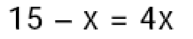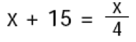 Bob is thinking of a number. He adds 15 to his number and finds the result is four times his number. Suppose x is Bob's number. Which equation is always true?
