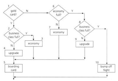 If you are flying with an economy ticket, there is a possibility that you may get upgraded to business class, especially if you hold a gold card in the airline's frequent flier program. If you don't hold a gold card, there is a possibility that you will get 'bumped' off the flight if it is full and you check in late. This is shown in Figure 4.5. Note that each box (i.e. statement) has been numbered.