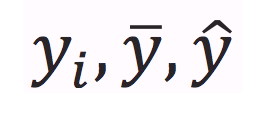 A predicted or estimated value of y, the mean value of y, and observed value of y