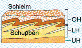 Fische haben Schuppen, die mit einem Sekret überzogen sind um ihnen das Schwimmen im Wasser zu erleichtern.