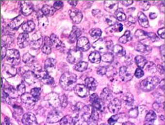 Sheets of rounds cells with very large nucleoli