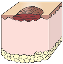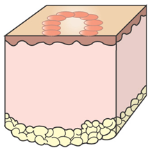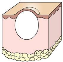 An ULCER is a shallow epidermal defect that does not penetrate the basement membrane and thus heals by regeneration i.e. without scarring