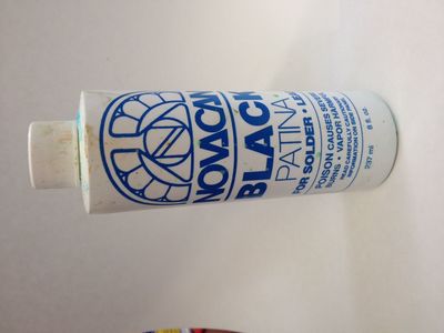 This is patina, you choose either copper or black, and apply to the solder lines after you wash off the flux from soldering.