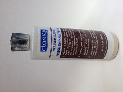 Tack and solder seams, copper foil and burnish smooth, cut pattern with foil sheers, wash pieces, copy pattern, wash clean, patina finish, cut glass patterns, grind pieces to fit, buff shiny with finishing compound
