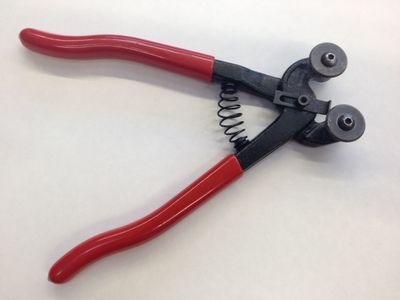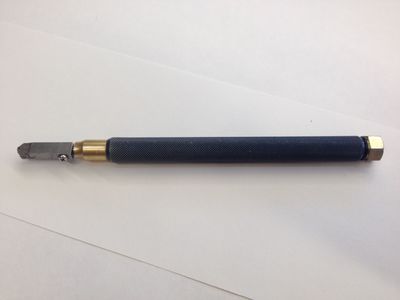 This tool is used to create a score line in the glass, so the glass will break along that line.
