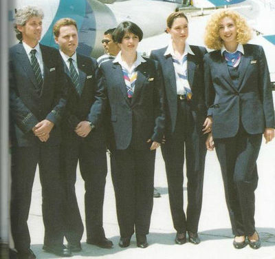 Zurück in die Zeit, aus der so ziemlich niemand mehr gern Bilder von sich anschaut. Die 80er. Welche Airline griff Ende des Jahrzehnts noch einmal zu Schulterpolstern?