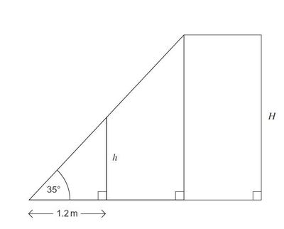 The diagram shows three pieces of glass in a conservatory roof. Work out the height, \(h\), of the smallest piece.