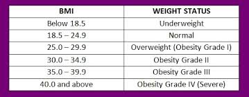 Using Sarah's BMI result, select her BMI rating from the table below.