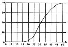 Consider the following ogive. It shows the hourly income in rand of a group of students. Which amount shown is the best estimate of the interquartile range: