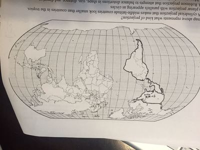 A Robinson projection that attempts to balance distortions in shape, size, distance and direction