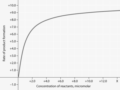 For the enzyme-catalyzed reaction shown in the figure, which of these treatments will cause the greatest increase in the rate of the reaction, if the initial reactant concentration is 1.0 micromolar?