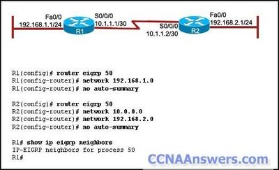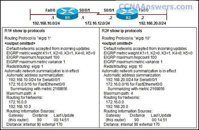 Refer to the exhibit. EIGRP has been configured on all routers in the network. Router R1 cannot form a neighbor relationship with router R2. On the basis of the show ip protocols command output that is provided, what could be the cause of the problem?