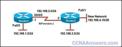 Refer to the exhibit. Router1 and Router2 are both running RIPv2 with autosummarization disabled. Which subnet mask will Router1 associate with network 192.168.4.16/28?