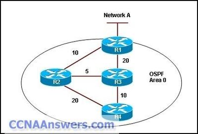 Refer to the exhibit. OSPF has been configured as a routing protocol on all routers in OSPF area 0. Based on the cost value of the links, which path will be selected by the SPF algorithm to forward traffic from router R4 to network A?