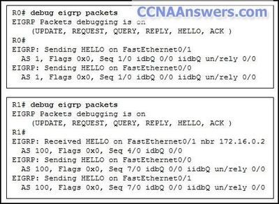 Refer to the exhibit. A network technician has added router R0 to an existing network that contains router R1. R0 is configured with EIGRP and is connected to R1 via the Fa0/0 interface of each router. After completing an analysis of the network, the technician notices that the routes to the networks that are supported by routers R0 and R1 are not being exchanged. What is a possible cause for this failure?