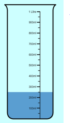 The beaker shown has been partially filled with water. If I only need to fill the beaker to 825ml, how much water must I add.