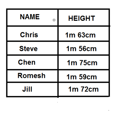 Gary records the heights of five of his friends. What is the average mean height of his friends.