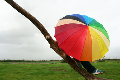 Das Mädchen versteckt sich ... dem Regenschirm.