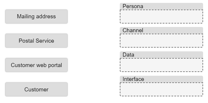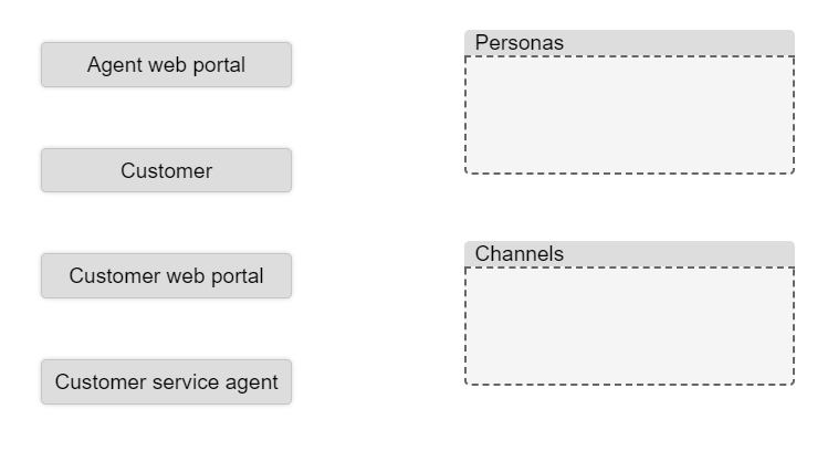 In the Address change microjourney, a customer service agent walks the customer through the process of changing their address. The customer service agent and the customer access separate web portals. Drag the following items to the appropriate drop zone.