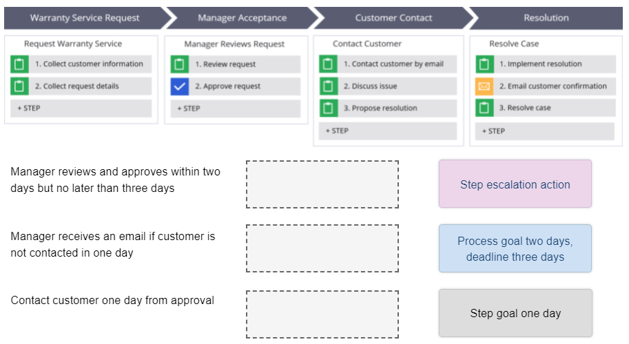 Customers submit high priority support requests to a company. If the customer service representative (CSR) validates that the request meets the severity 1 criteria, the case is routed to the worklist of a high priority CSR. If the CSR determines that the request does not meet the severity 1 criteria, the severity is downgraded and the case is routed to the general CSR workgroup.