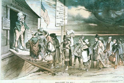 Immigrants were fleeing European countries filled with political problems, forced military service, famine, and poverty. They were welcomed into America a land of freedom and opportunity.