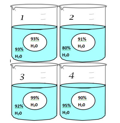 Each beaker shown here contains a cell in a solution. (The white oval shape = cell.) Which of these beakers and cell would be considered isotonic?