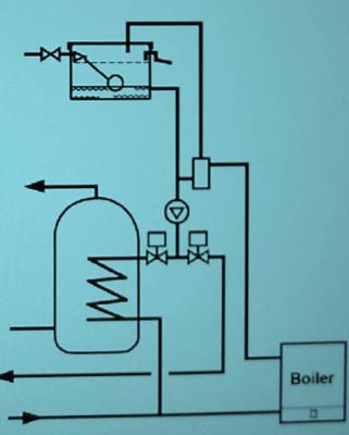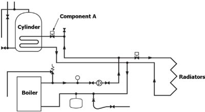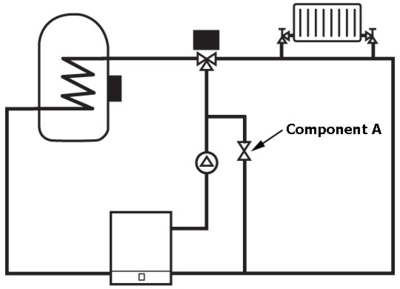 a) A bypass arrangement in the primary flow and return to assist the boiler in removing excess hot water.