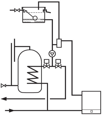 c) An arrangement permitting hot water to be obtained without the heating circuit being in operation