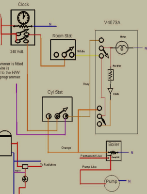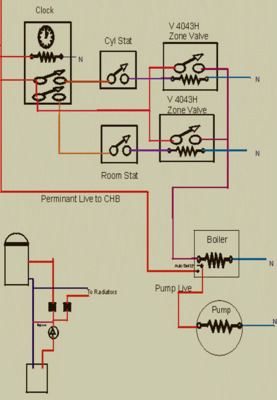 d) A wiring arrangement that prevents the boiler firing unless there IS a demand from either the water of space heating