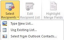 From the list on the picture below which one should be selected to insert data into a mail merge?