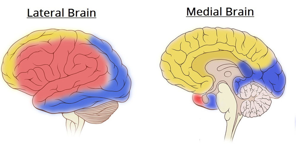 The [blank_start]medial[blank_end] temporal lobe contains several structures critical for memory including the hippocampus and parahippocampal gyrus.