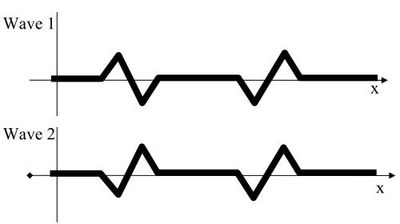 The pulse on the left is moving right, the pulse on the right is moving left. What do you see when the pulses overlap?