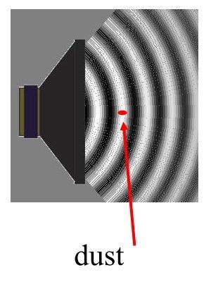 If you could put a dust particle in front of a moving speaker. Which choice below shows the motion of the dust particle?