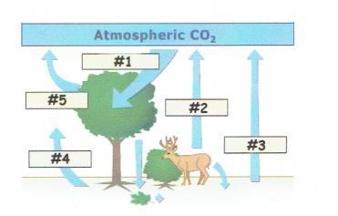 In addition to carbon dioxide, what chemical compound is released in to the atmosphere as a result of processes #2 and #5?