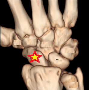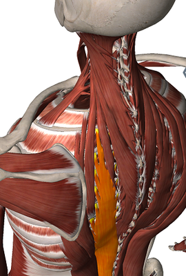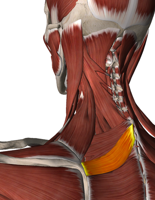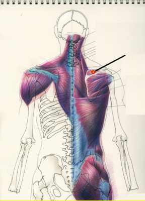 Jules-Jean-Jacques a mal dans l'épaule lorsqu'il fait des mouvements avec les mains au-dessus de la tête. Il se plaint d'un pincement. Après quelques tests, il se fait expliquer que son supra-épineux (identifié sur l'image) manque d'espace dans cette position car une structure en particulier vient le gêner dans son mouvement et le pince lors d'une ABD à l'épaule excédant les 90 degrés. De quelle structure s'agit-il possiblement?