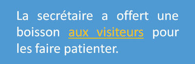 La secrétaire [blank_start]leur a offert[blank_end] une boisson pour les faire patienter.