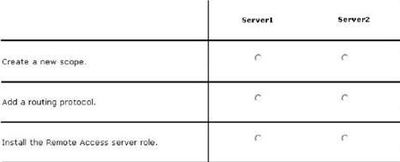 create a new scope on server1, add a routing protocol and istall the Remote Access server role on server2