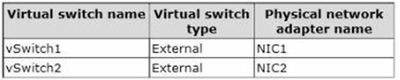You have a Hyper-V host named Server1 that runs Windows Server 2012 R2.Server1 has the virtual switches listed in the following table.
