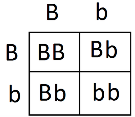 Take a look at the punnett square below - if B = brown eyes and b = blue eyes - What is the chance you could have a brown eyed child?
