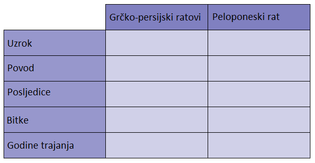 Sredinom [blank_start]V[blank_end] vijeka p.n.e. Atina je bila na vrhuncu moći. Najznačajnija ličnost toga doba je bio [blank_start]Perikle[blank_end], veliki govornik, vojskovođa i državnik. Za njegovog vremena Atina je ukrašena mnogim građevinama i spomenicima. Na brdu [blank_start]Akropolju[blank_end] je izgrađen veličansveni hram [blank_start]Partenon[blank_end], posvećen boginji [blank_start]Atini[blank_end]. Atinska luka [blank_start]Pirej[blank_end] je bila zaštićena velikim zidinama i povezana sa gradom. Njegova vladavina poznata je kao [blank_start]"zlatno doba"[blank_end] Atine.