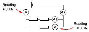 What is the reading on the ammeter labelled A1 in this circuit?