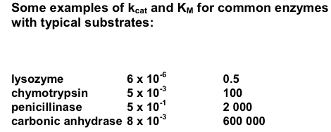 Enzymes are capable of working on a number of substrates, some better than others. The efficiency of these enzymes depends both on kcat and on KM.